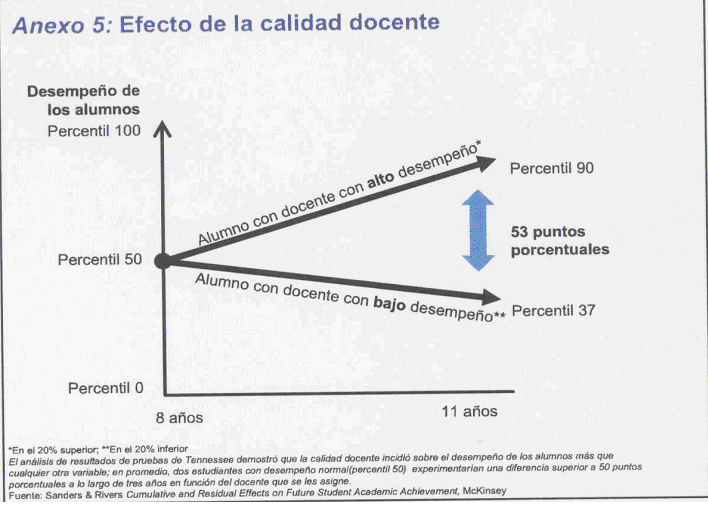 Hay algo que no se si entiendo, dices: «El impacto negativo de los docentes con bajo desempeño es severo, particularmente en los primeros años de escolaridad. En el nivel primario, los alumnos con docentes con bajo desempeño durante varios años seguidos sufren una pérdida educacional que es en gran medida irreversible.”